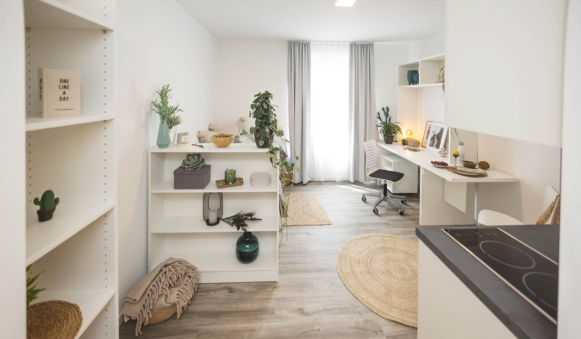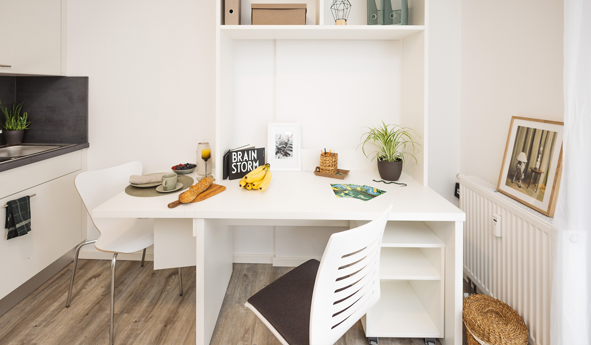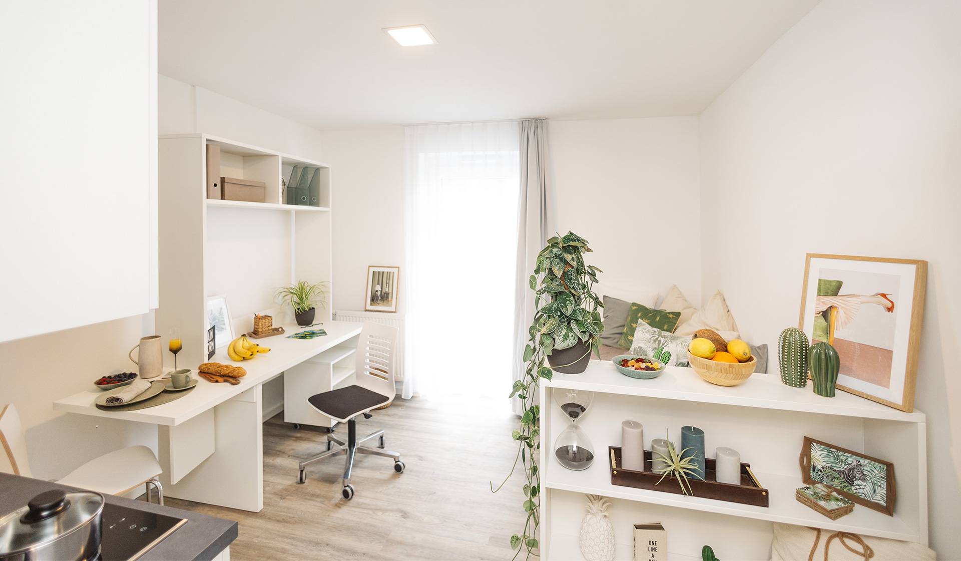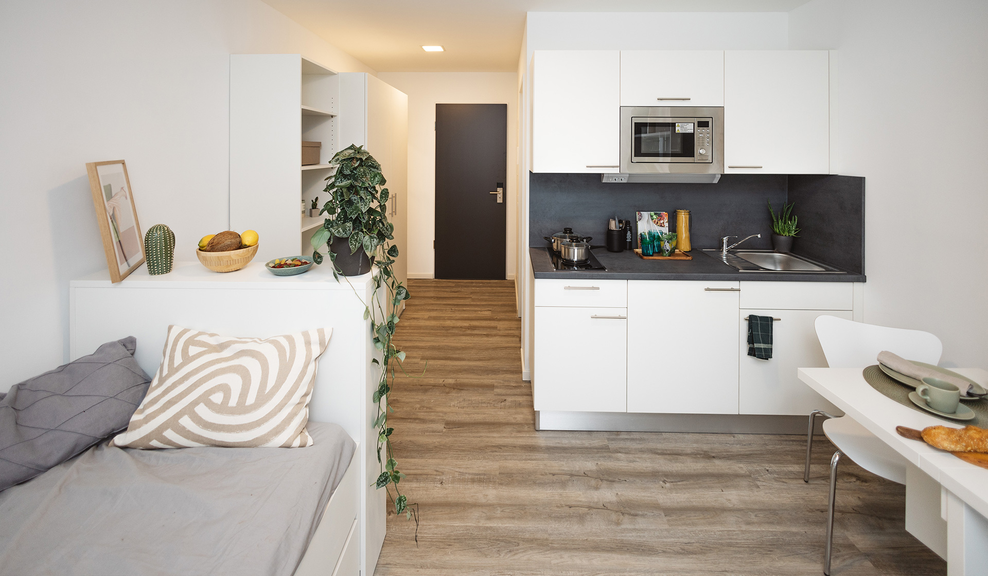 Sprechen wir hier von modern eingerichteten Apartments für Studierende und junge Berufstätige? Ja, aber nicht nur, denn diese Apartments passen ganz einfach für smarte User jeden Alters. Die besondere Kombination aus hochwertigem Wohnen und einer spannenden, internationalen Community ist immer interessant. Triff neue Menschen und starte sofort durch – mit den besten Momenten Düsseldorfs. Um das Apartment haben wir uns schon mal gekümmert.